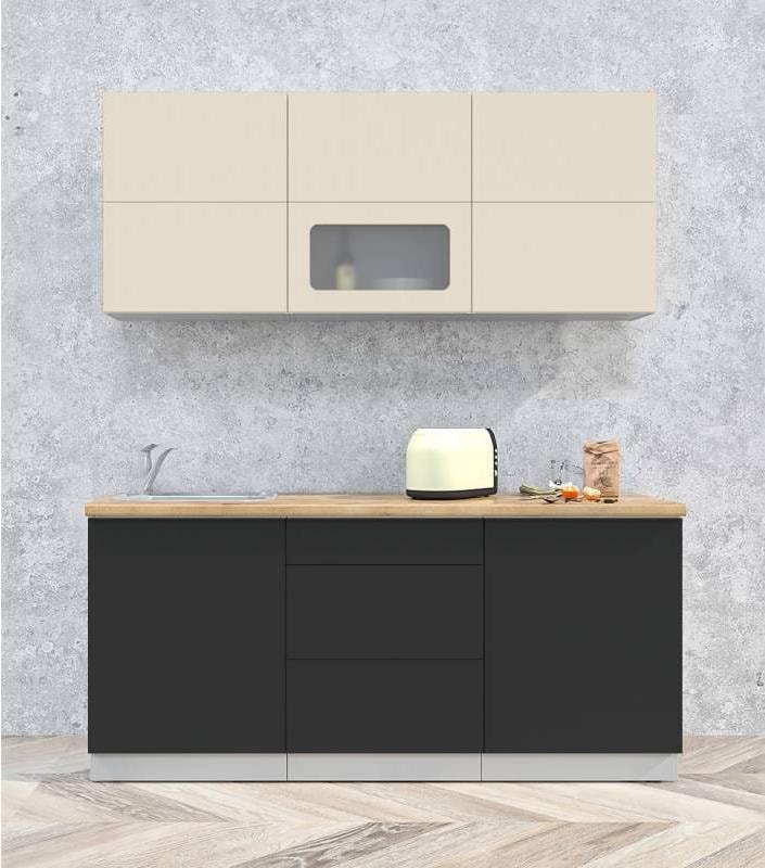линейная, длина 180 см, ширина 60 см, каркас ЛДСП, фасад МДФ пленочный, установка мойки: врезная мойка, ширина шкафа под мойку 60 см