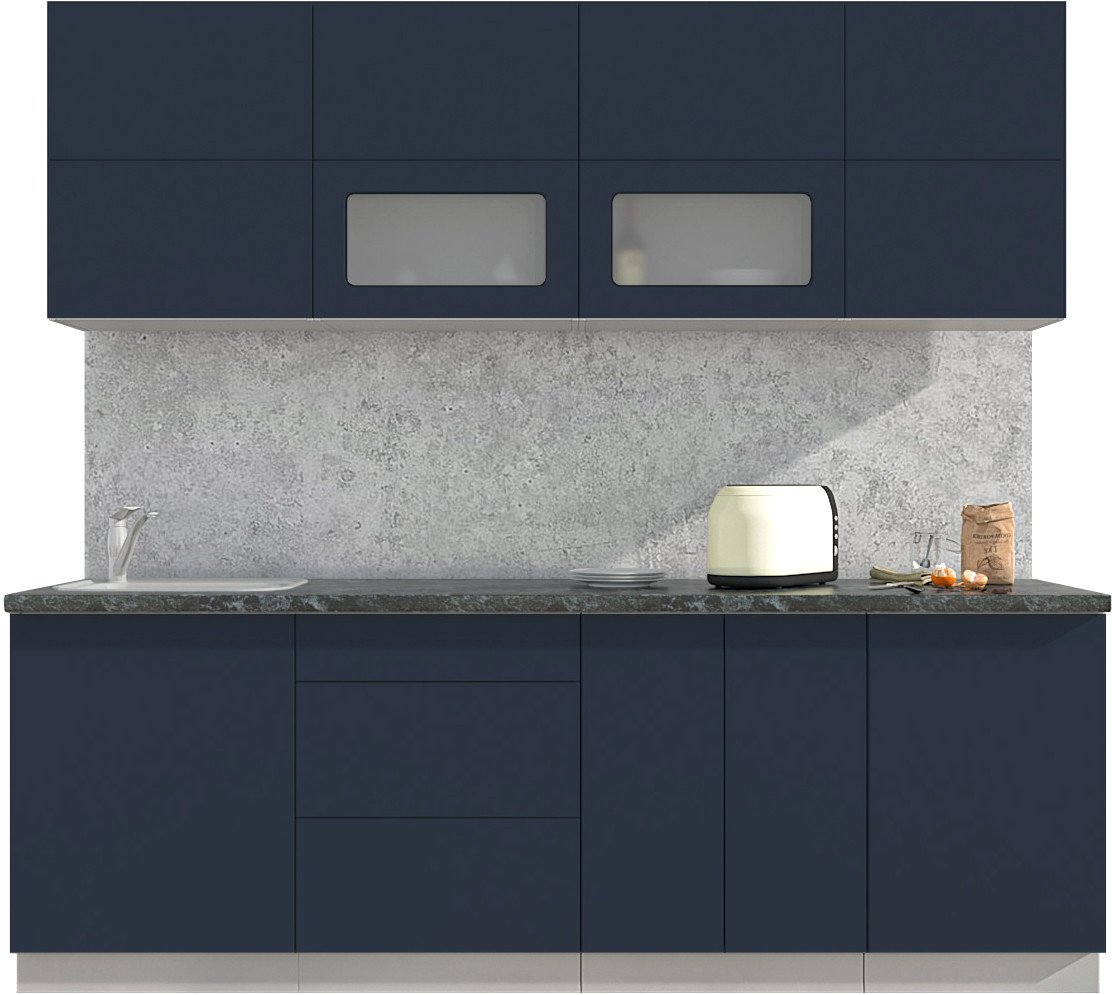 Готовая кухня Интерлиния Мила Матте 2.3 А (индиго/индиго глянец/кастилло темный)