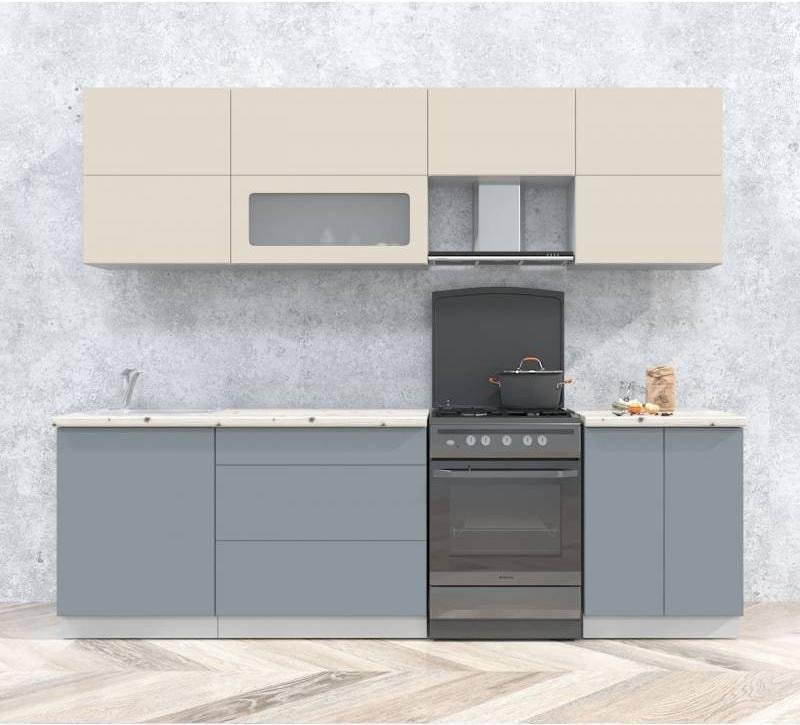 линейная, длина 260 см, ширина 60 см, каркас ЛДСП, фасад МДФ пленочный, установка мойки: врезная мойка, ширина шкафа под мойку 60 см