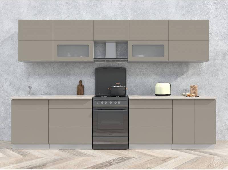 линейная, длина 330 см, ширина 60 см, каркас ЛДСП, фасад МДФ пленочный, установка мойки: врезная мойка, ширина шкафа под мойку 60 см