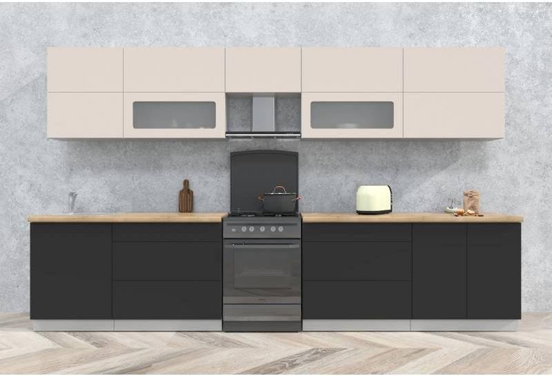 линейная, длина 360 см, ширина 60 см, каркас ЛДСП, фасад МДФ пленочный, установка мойки: врезная мойка, ширина шкафа под мойку 60 см