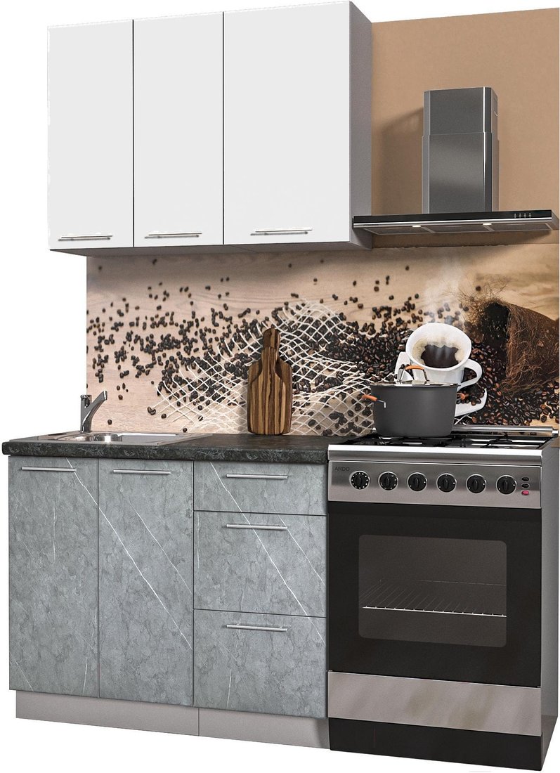 Готовая кухня Интерлиния Мила Пластик 1.0 А (мрамор/белый глянец/кастилло темный)