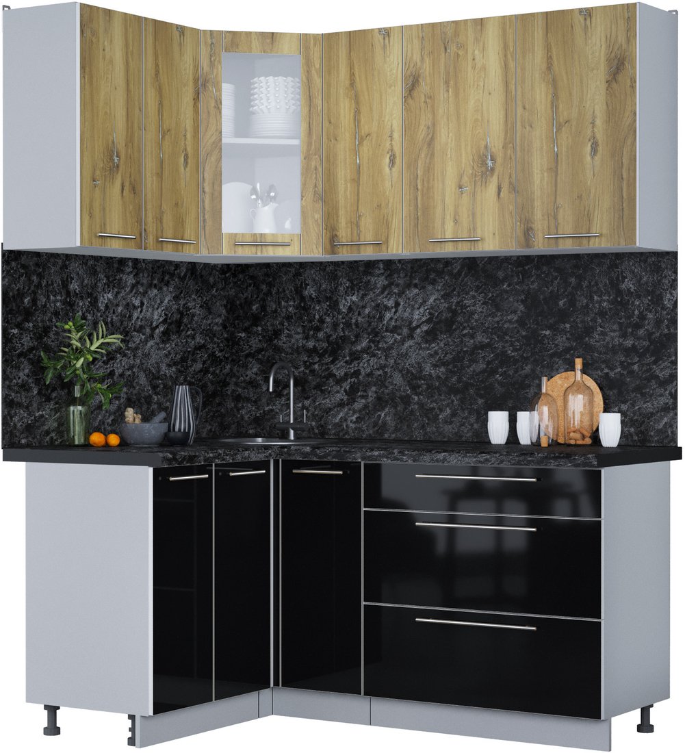 Готовая кухня Интерлиния Мила Пластик 1.2x1.7 (дуб эпоксид/черный/кастилло темный)