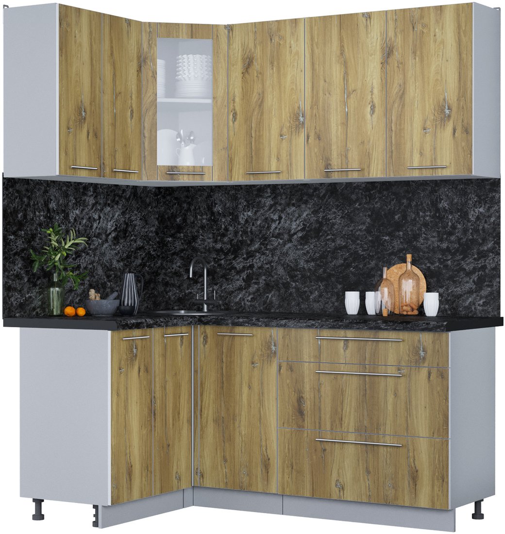 угловая, длина 180 см, ширина 120 см, каркас ЛДСП, фасад МДФ крашеный/пластик, установка мойки: врезная мойка, ширина шкафа под мойку 98 см