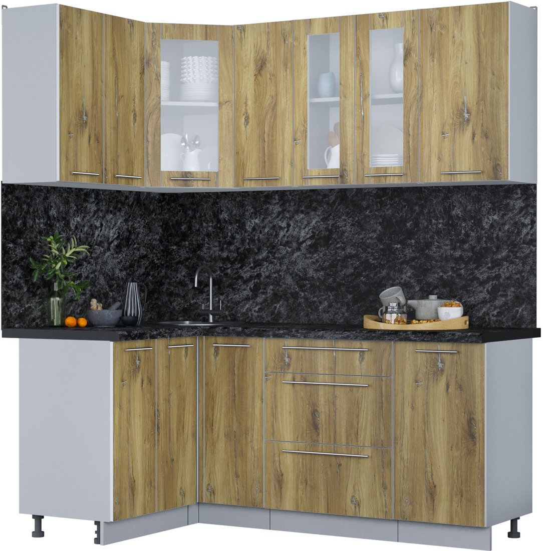 Готовая кухня Интерлиния Мила Пластик 1.2x1.9 (дуб эпоксид/дуб эпоксид/кастилло темный)
