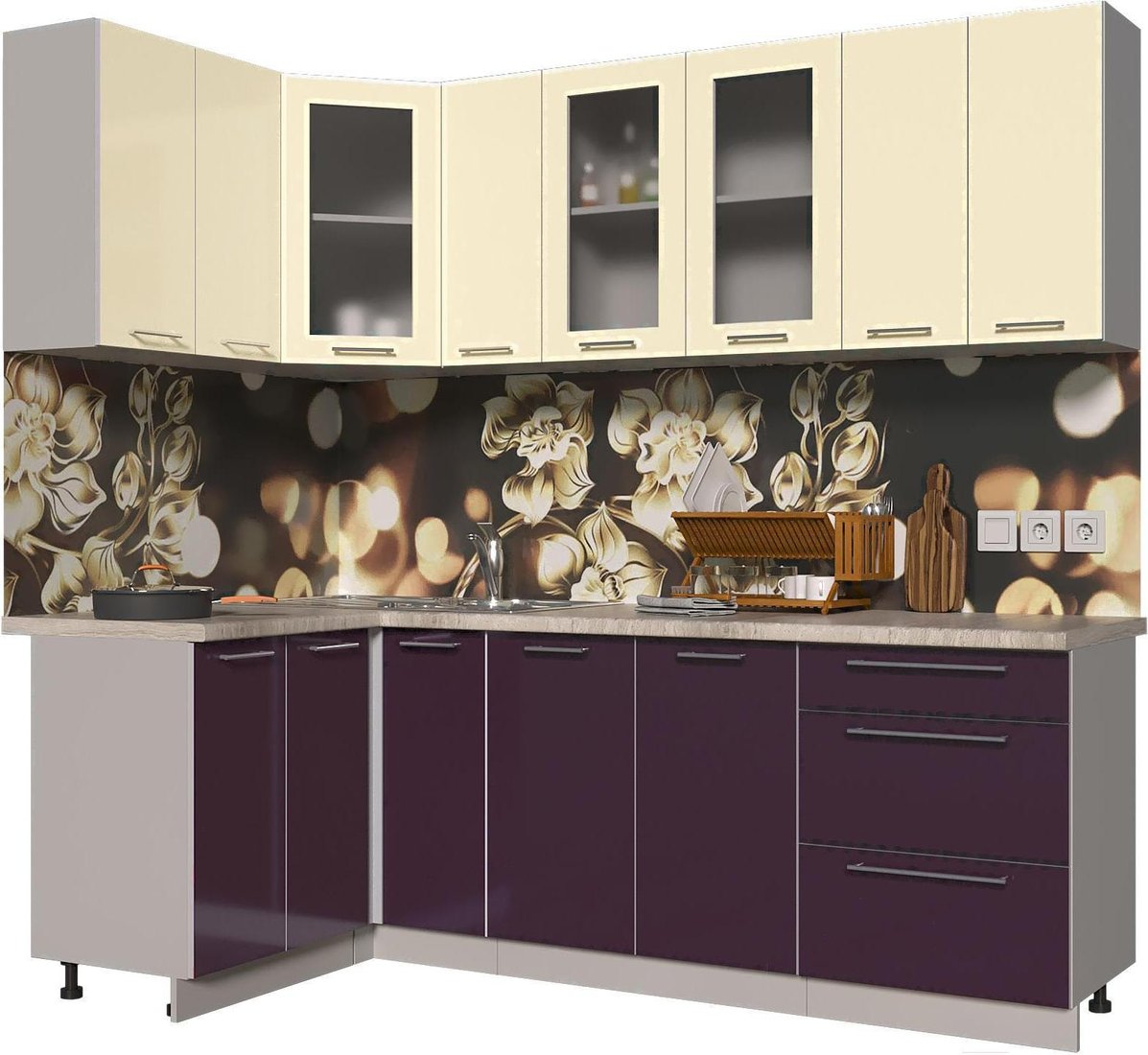 Готовая кухня Интерлиния Мила Пластик 1.2x2.3 (слива глянец/ваниль глянец/травертин)