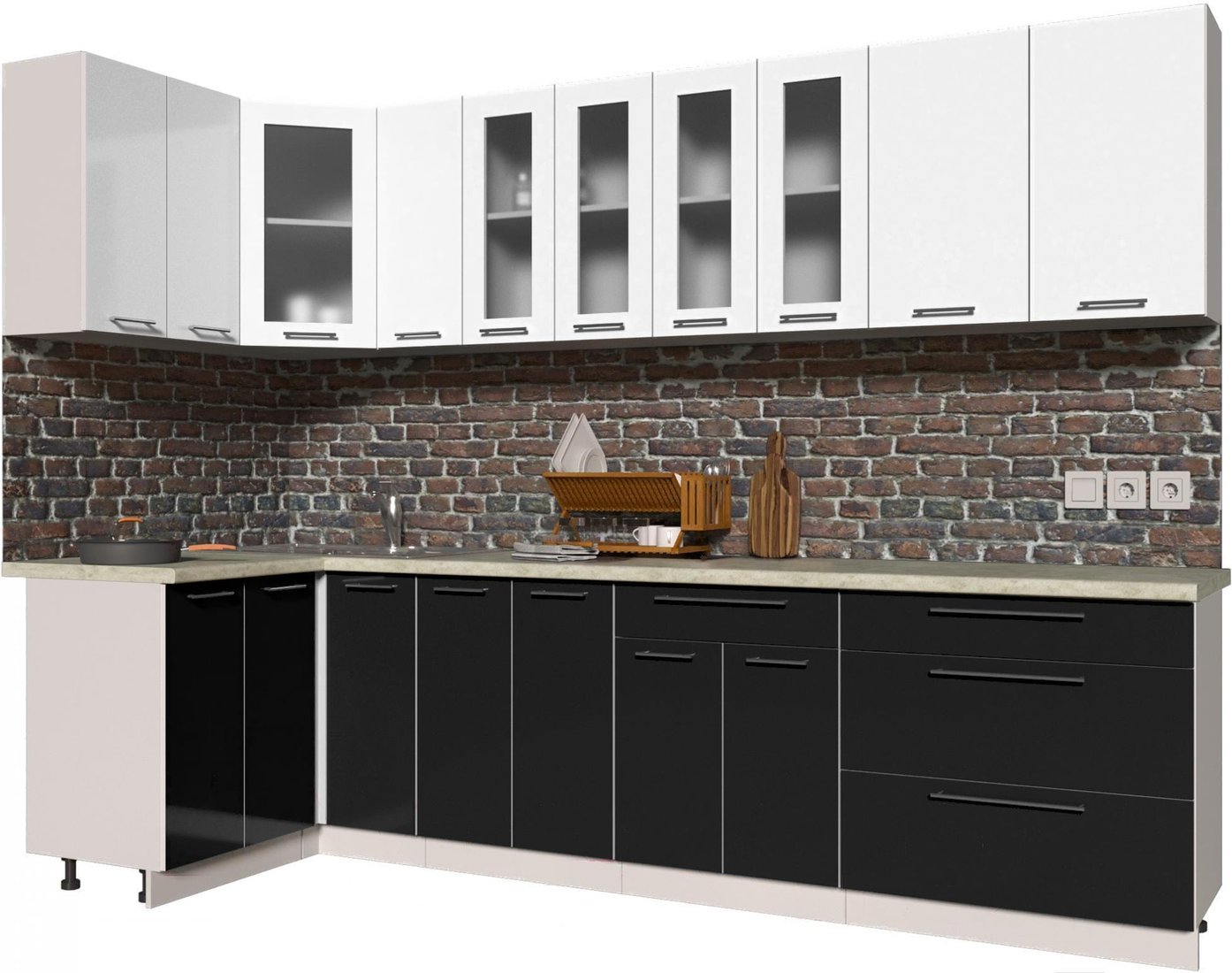 Готовая кухня Интерлиния Мила Пластик 1.2x2.9 (черный глянец/белый глянец/опал светлый)
