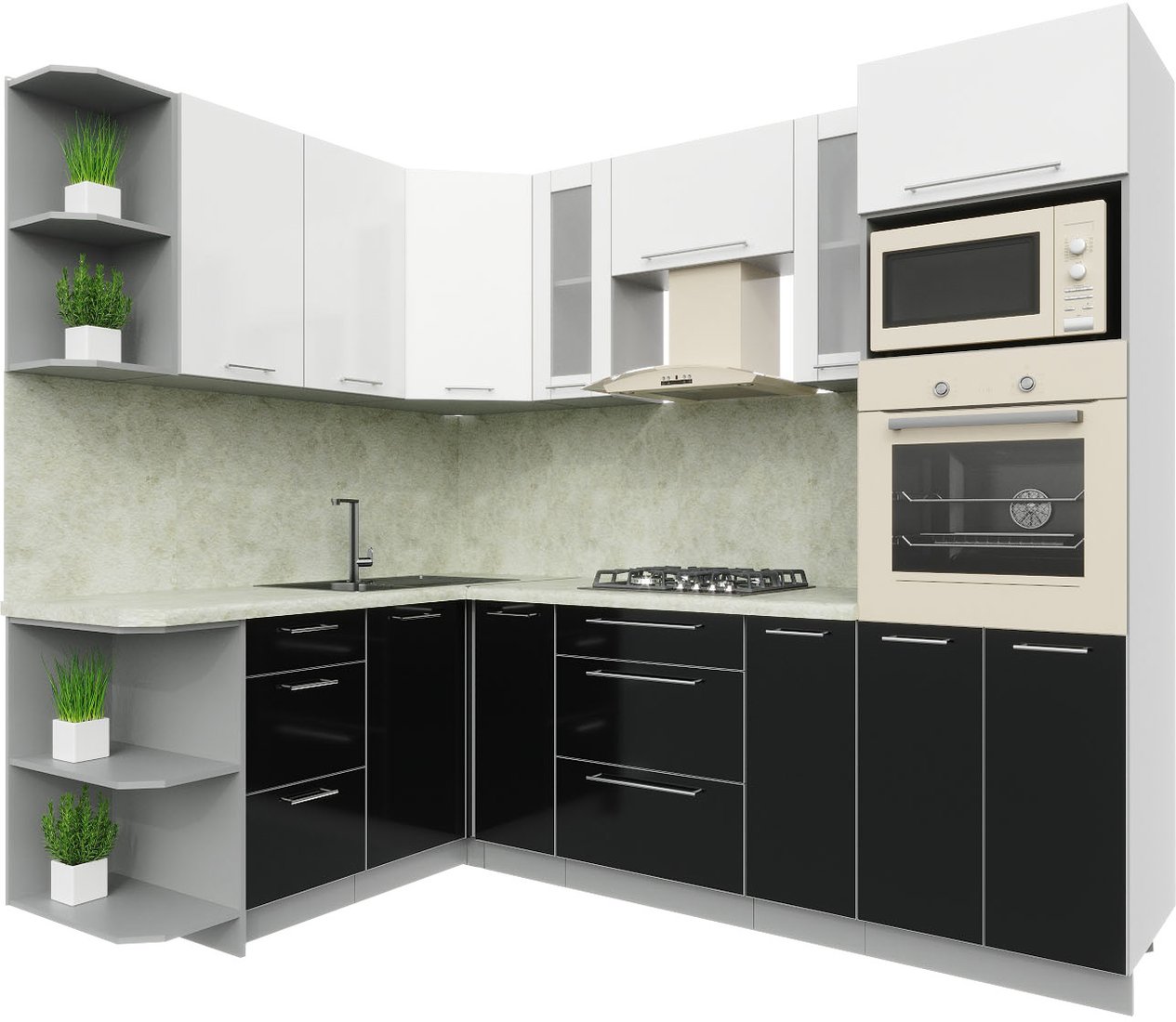 Готовая кухня Интерлиния Мила Пластик 1.68x2.4 левая (черный/белый глянец/опал светлый)