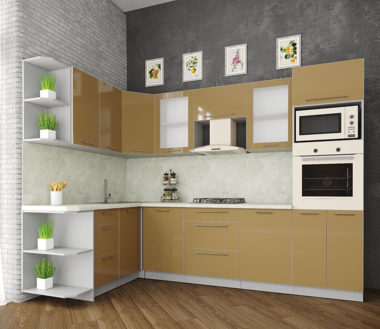 Готовая кухня Интерлиния Мила Пластик 1.68x2.8 левая (капучино/капучино глянец/опал св.)