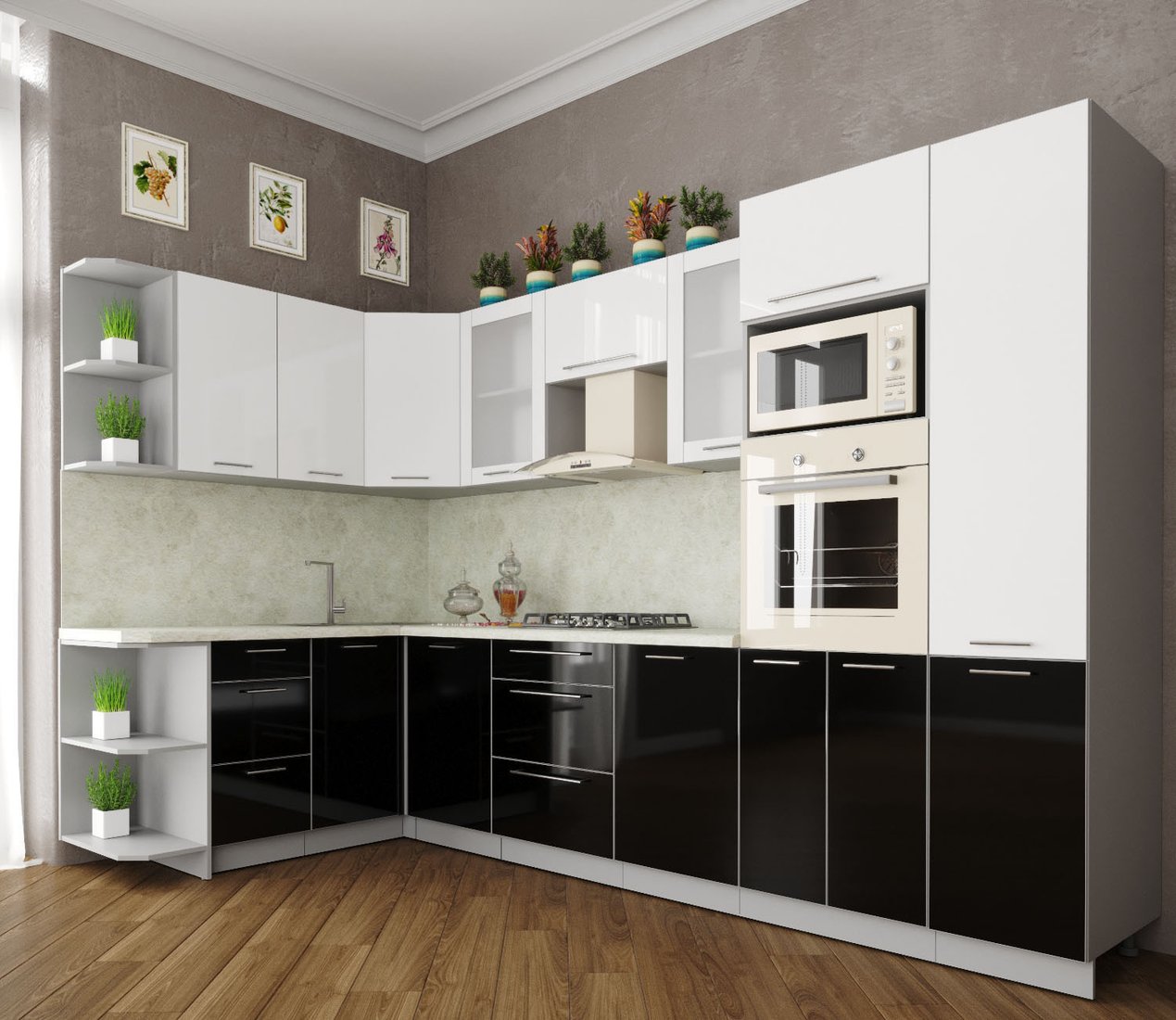Готовая кухня Интерлиния Мила Пластик 1.68x3.2 правая (белый глянец/черный/опал светлый)