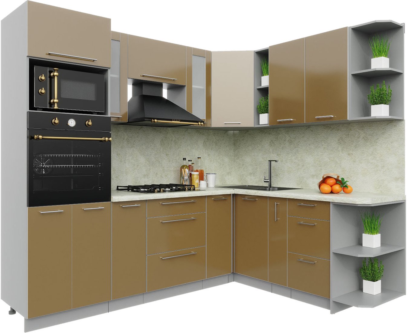 Готовая кухня Интерлиния Мила Пластик 1.88x2.4 правая (капучино/капучино глянец/опал светлый)