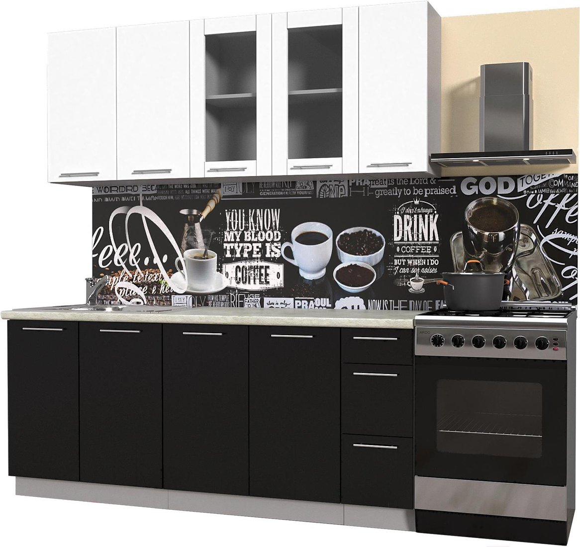 Готовая кухня Интерлиния Мила Пластик 1.9 Б (черный глянец/белый глянец/опал светлый)