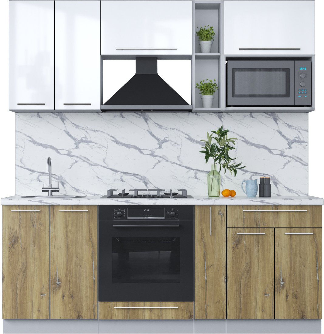 Готовая кухня Интерлиния Мила Пластик 2.0 (белый/дуб эпоксид/белый гранит)