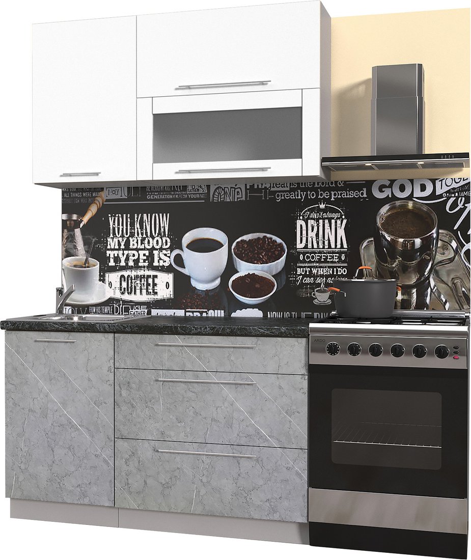 Готовая кухня Интерлиния Мила Пластик 2.1 В (мрамор глянец/белый глянец/кастилло темн.)