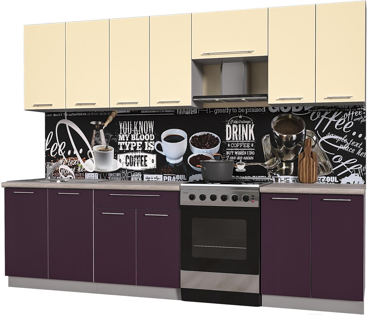 Готовая кухня Интерлиния Мила Пластик 2.8 А (слива глянец/ваниль глянец/травертин)