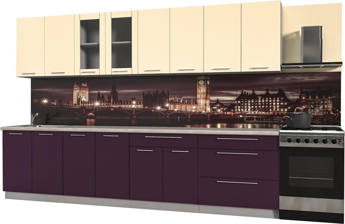 линейная, длина 320 см, ширина 60 см, каркас ЛДСП, установка мойки: врезная мойка, ширина шкафа под мойку 80 см