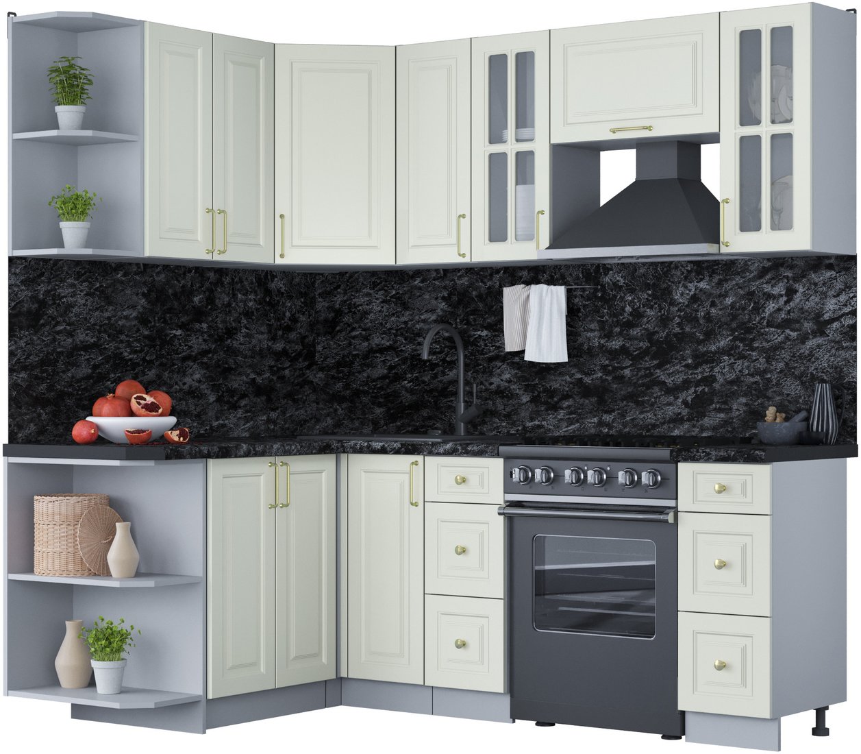 Готовая кухня Интерлиния Мила Шато 1.5x2.1 левая (белый/белый/кастилло темный)