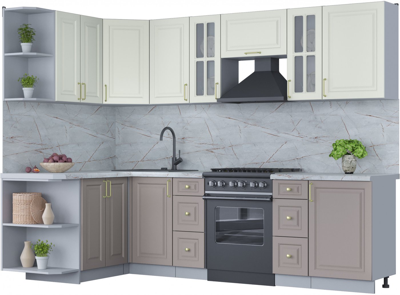 Готовая кухня Интерлиния Мила Шато 1.5x2.7 левая (белый/луна/серый каспий)
