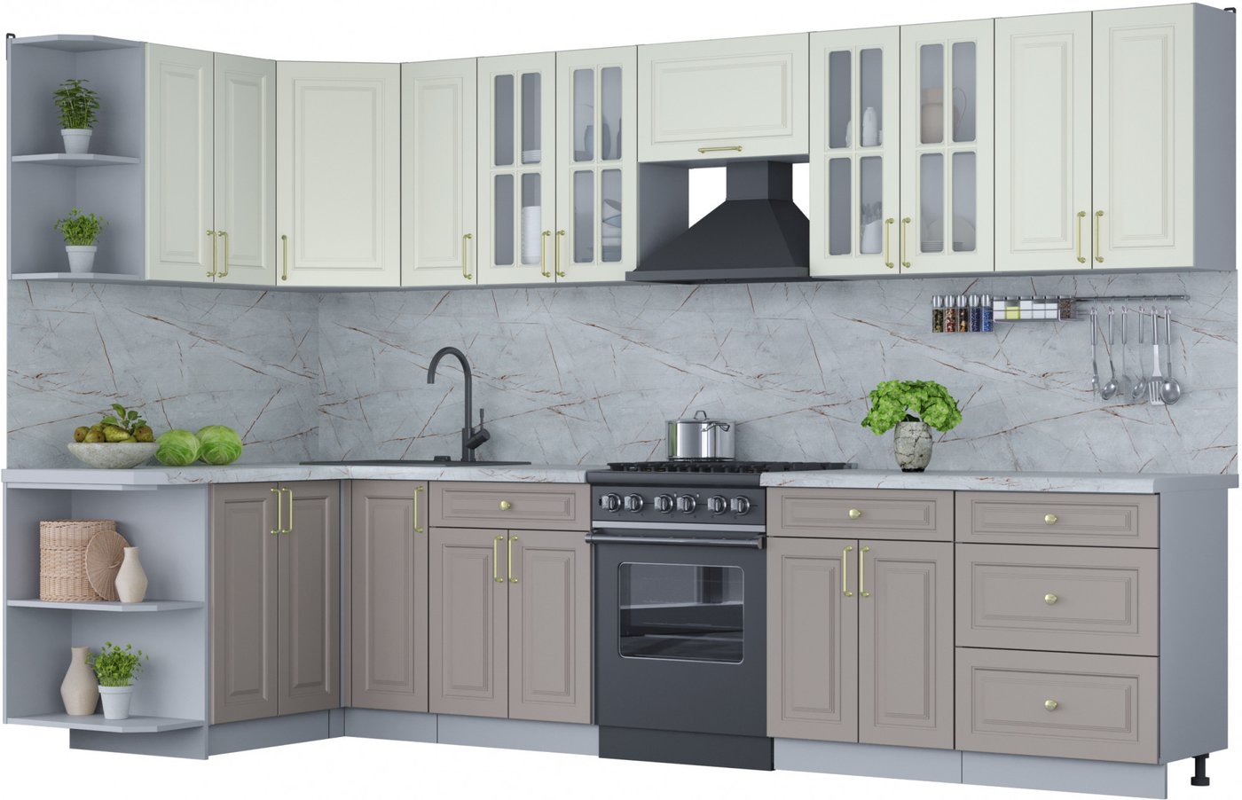 Готовая кухня Интерлиния Мила Шато 1.5x3.3 левая (белый/луна/серый каспий)
