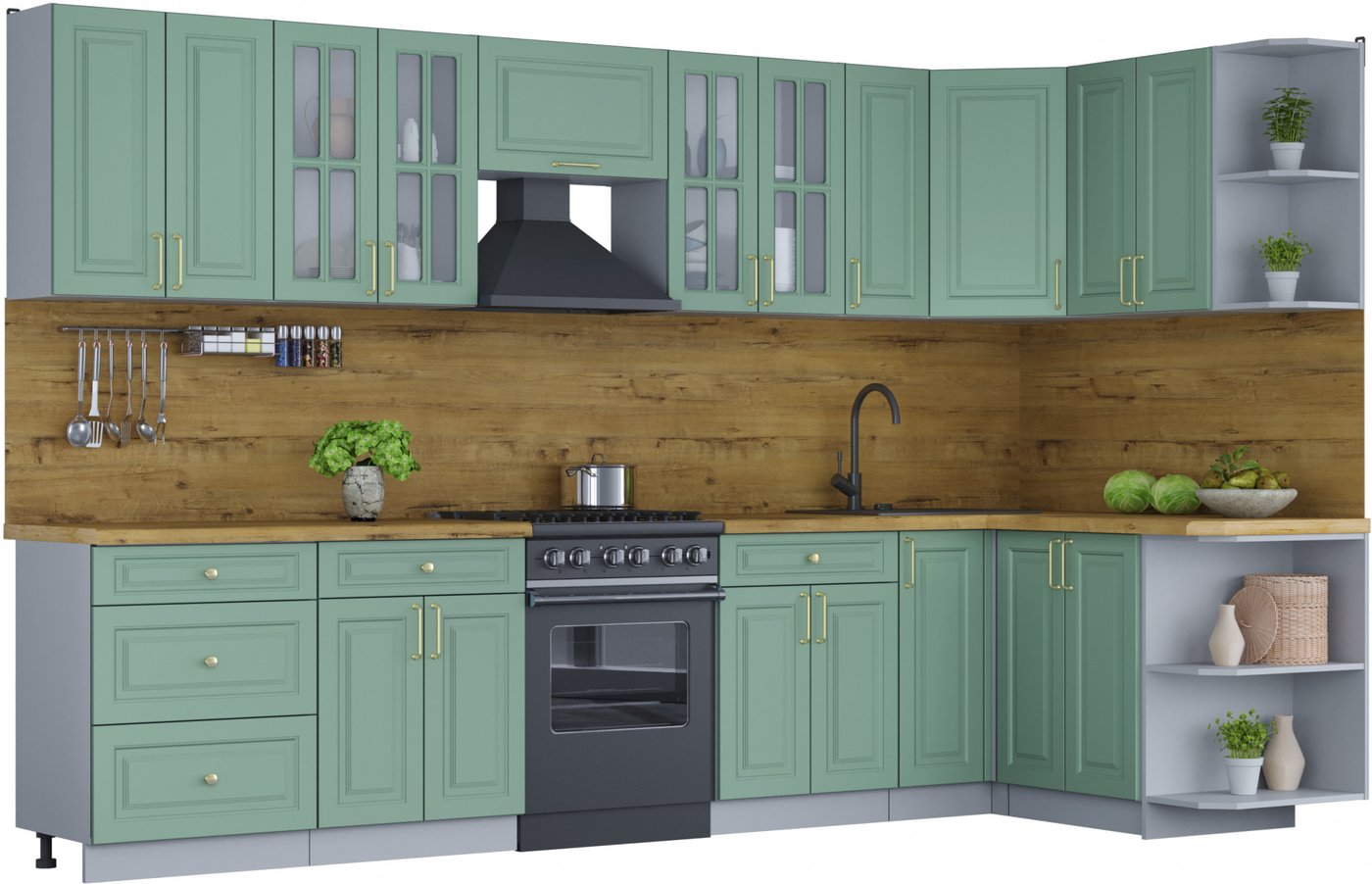 Готовая кухня Интерлиния Мила Шато 1.5x3.3 правая (мята/мята/дуб бунратти)