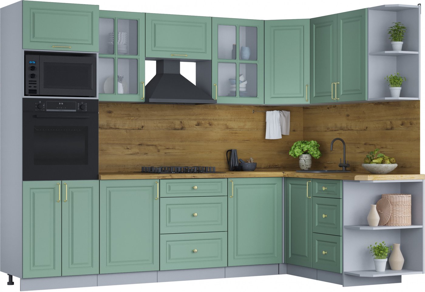 Готовая кухня Интерлиния Мила Шато 1.68x2.8 ВТ правая (мята/мята/дуб бунратти)