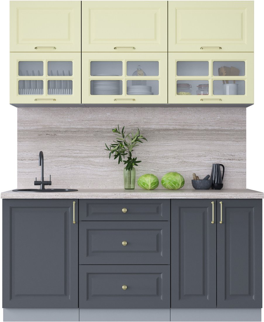 Готовая кухня Интерлиния Мила Шато 1.7Б (слоновая кость/пепел/травертин серый)