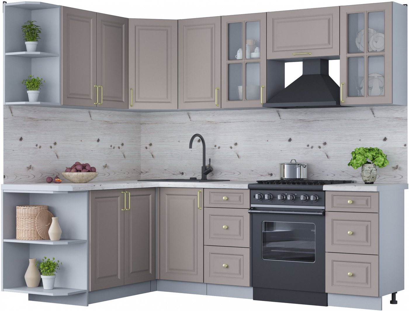 Готовая кухня Интерлиния Мила Шато 1.7x2.4 левая (луна/луна/бискайская сосна)