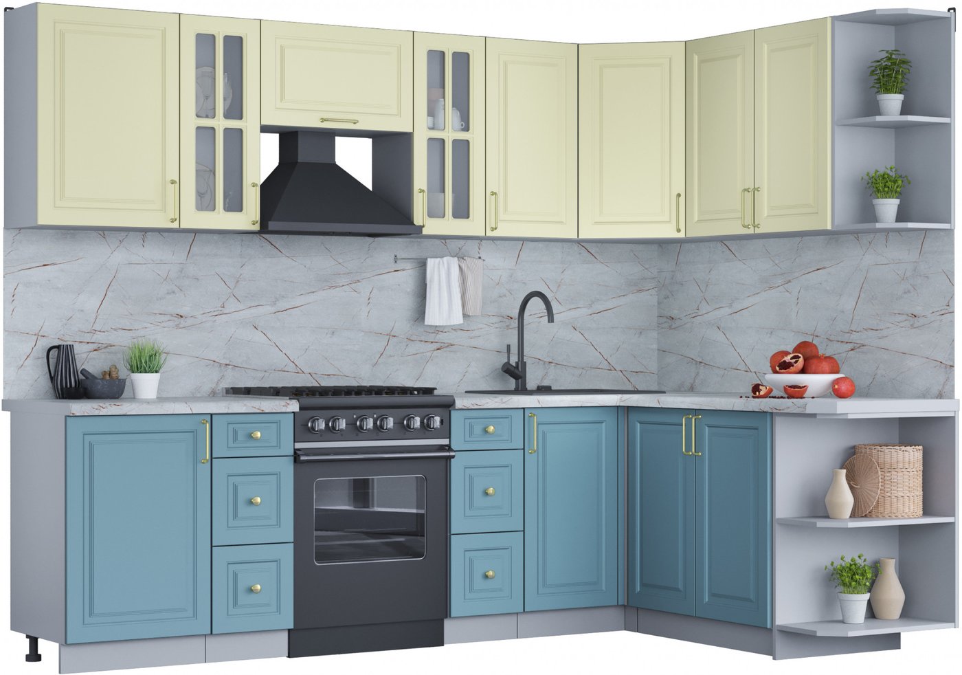 Готовая кухня Интерлиния Мила Шато 1.7x2.7 правая (слоновая кость/океан/серый каспий)