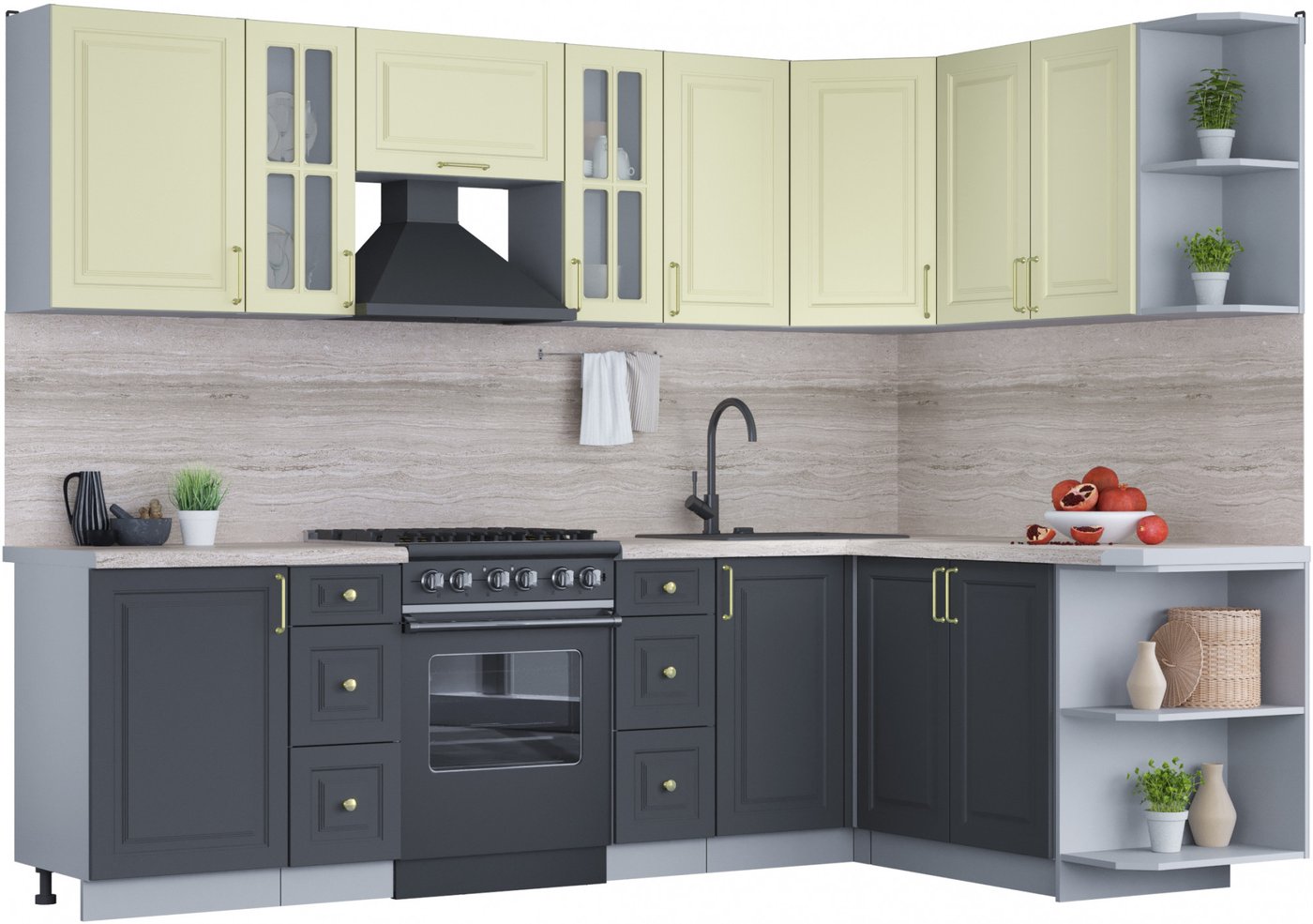 Готовая кухня Интерлиния Мила Шато 1.7x2.7 правая (слоновая кость/пепел/травертин серый)