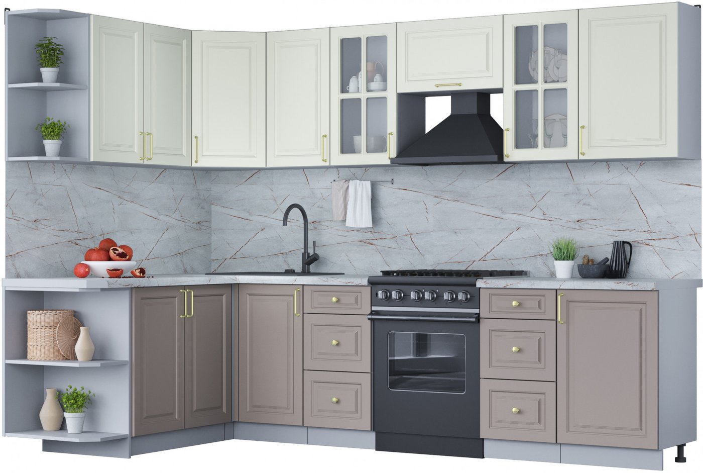 Готовая кухня Интерлиния Мила Шато 1.7x2.9 левая (белый/луна/серый каспий)