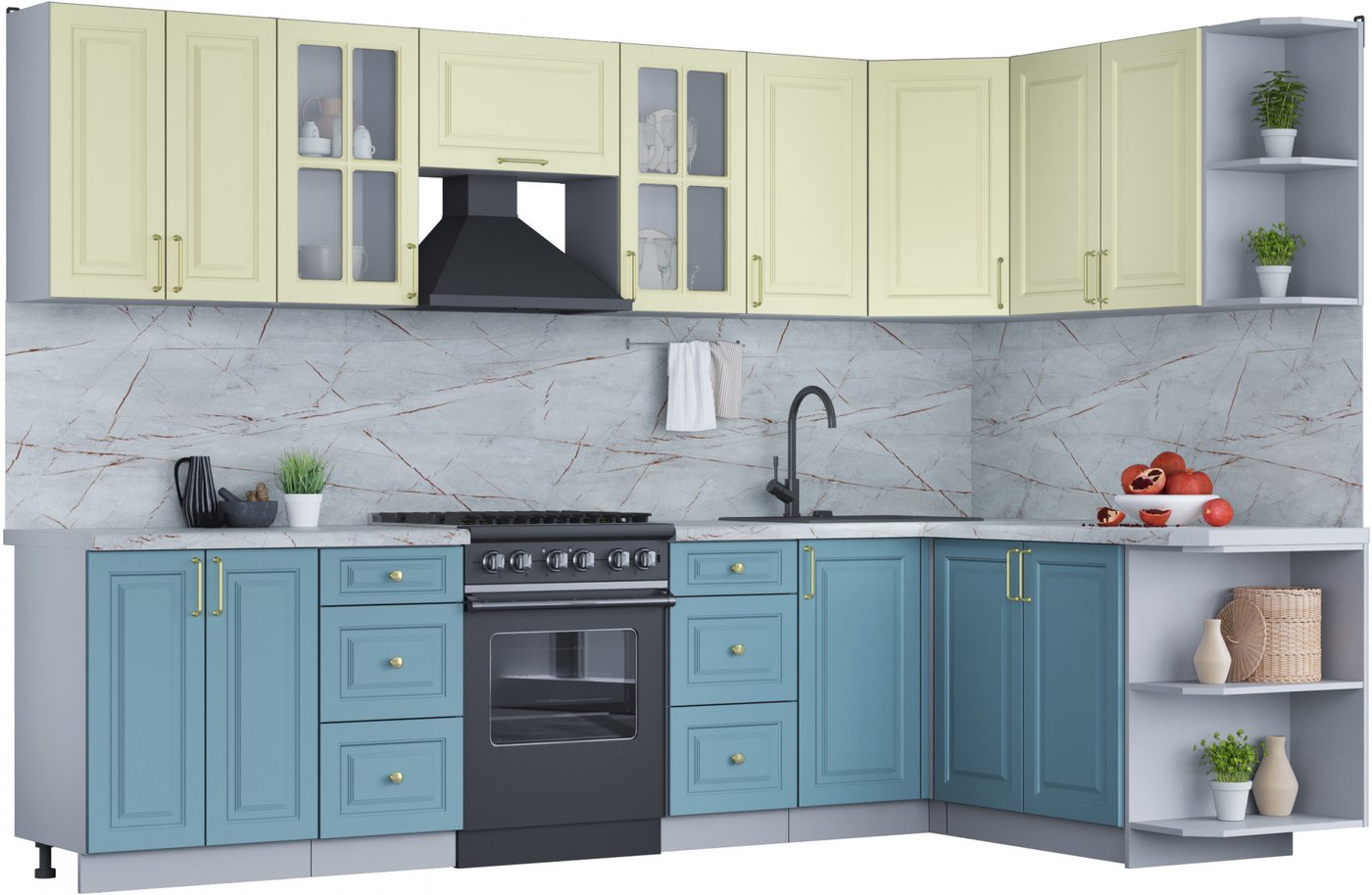 Готовая кухня Интерлиния Мила Шато 1.7x3.0 правая (слоновая кость/океан/серый каспий)