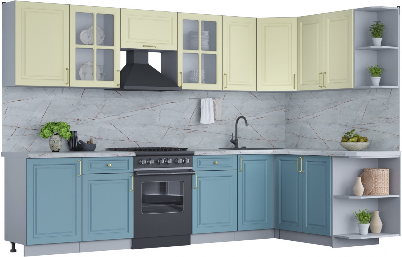 Готовая кухня Интерлиния Мила Шато 1.7x3.1 правая (слоновая кость/океан/серый каспий)