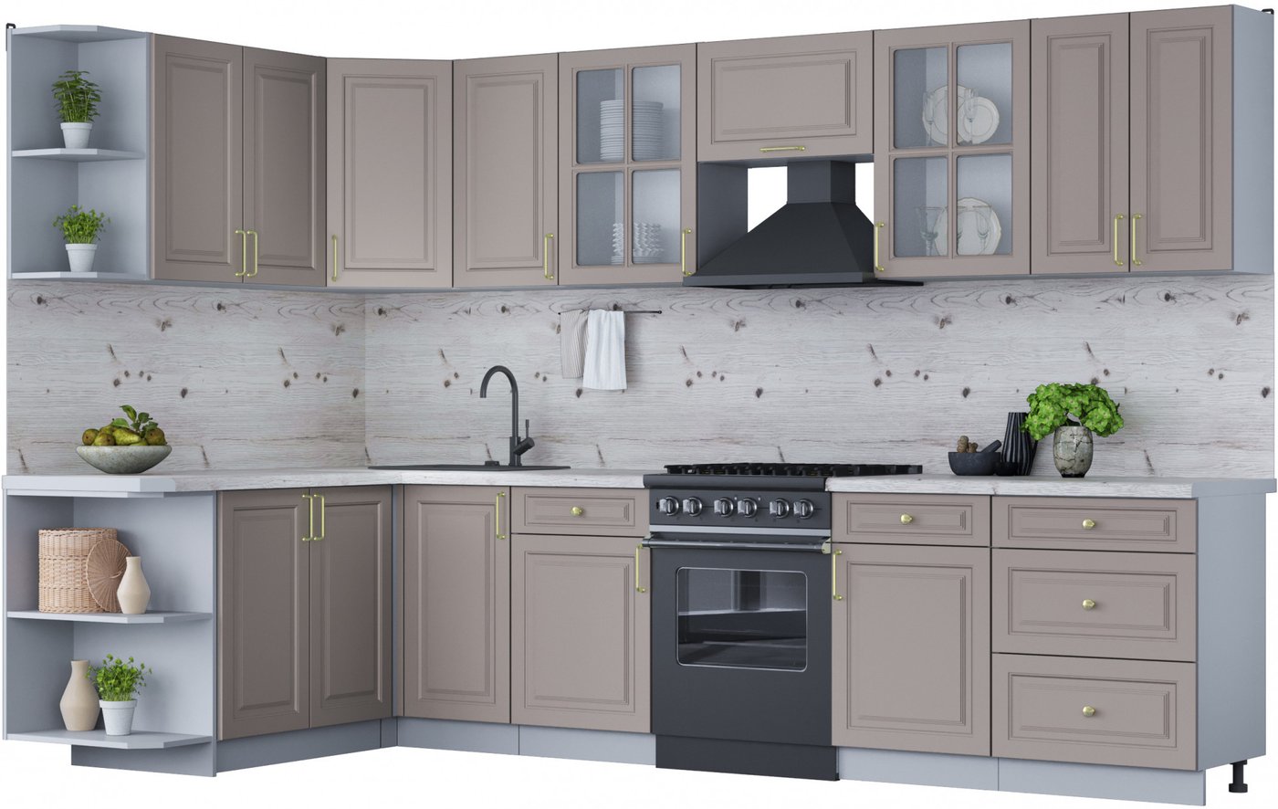 угловая, длина 320 см, ширина 170 см, каркас ЛДСП, фасад МДФ пленочный, установка мойки: врезная мойка, ширина шкафа под мойку 98 см