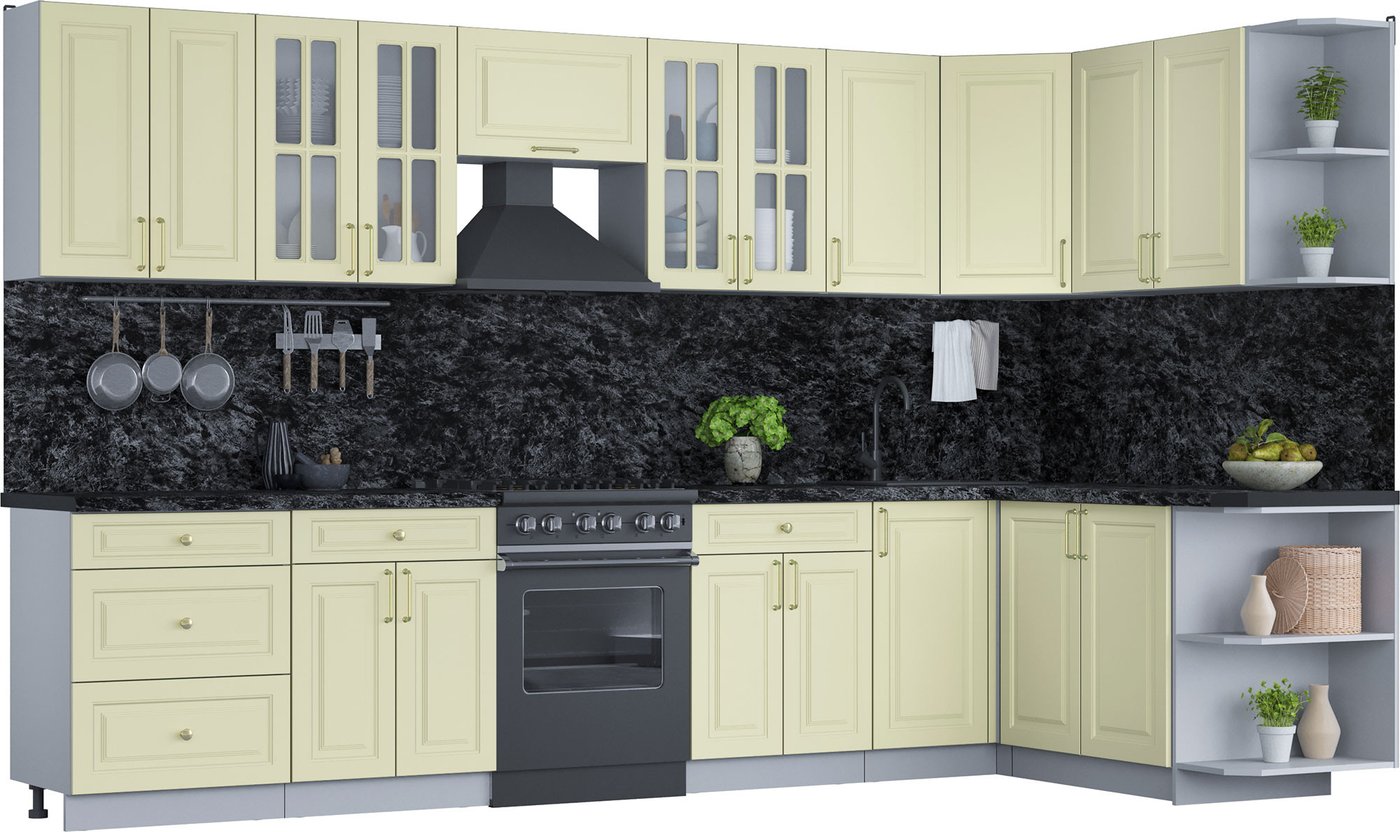 Готовая кухня Интерлиния Мила Шато 1.7x3.4 правая (слоновая кость/слоновая кость/кастилло темный)