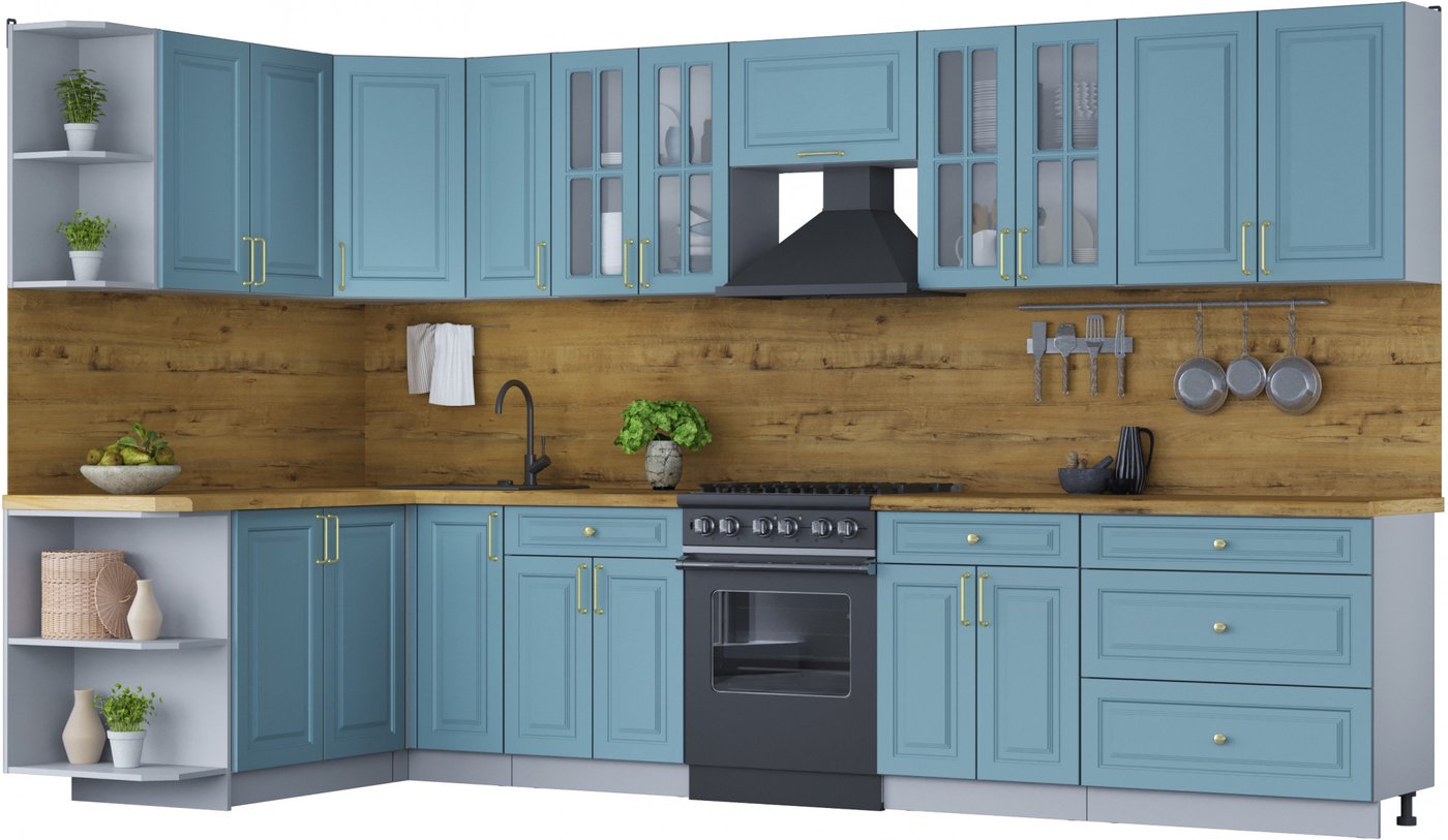 Готовая кухня Интерлиния Мила Шато 1.7x3.5 левая (океан/океан/дуб бунратти)