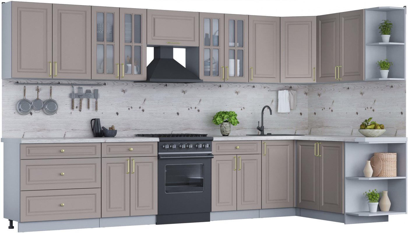 угловая, длина 360 см, ширина 170 см, каркас ЛДСП, фасад МДФ пленочный, установка мойки: врезная мойка