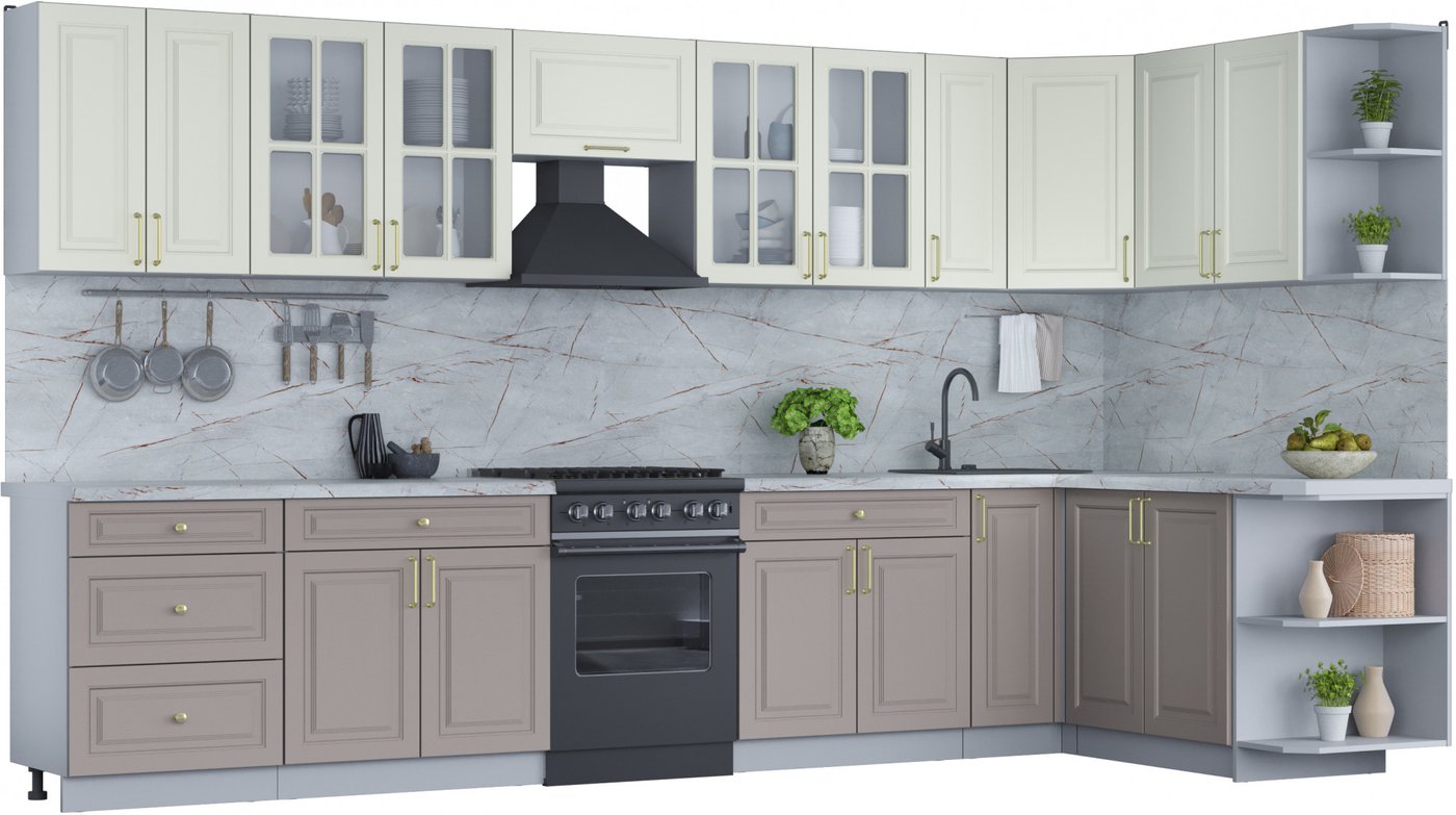 Готовая кухня Интерлиния Мила Шато 1.7x3.7 правая (белый/луна/серый каспий)