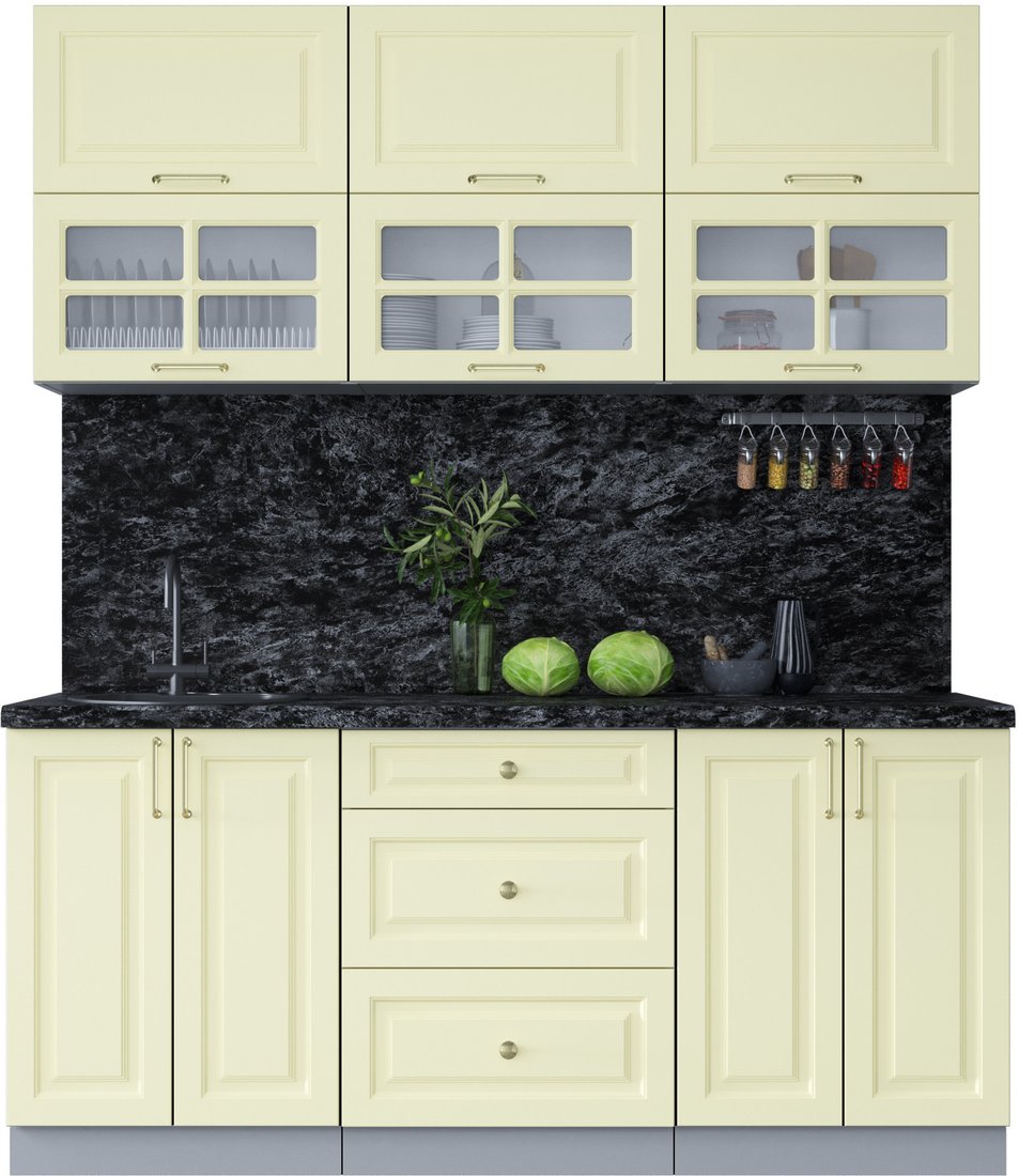 линейная, длина 180 см, ширина 60 см, каркас ЛДСП, фасад МДФ пленочный/стекло, установка мойки: врезная мойка, ширина шкафа под мойку 60 см