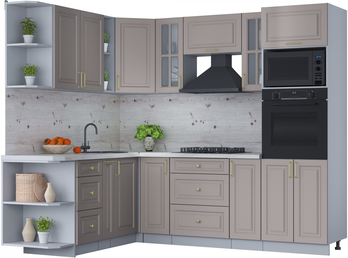 Готовая кухня Интерлиния Мила Шато 1.88x2.4 ВТ левая (луна/луна/бискайская сосна)