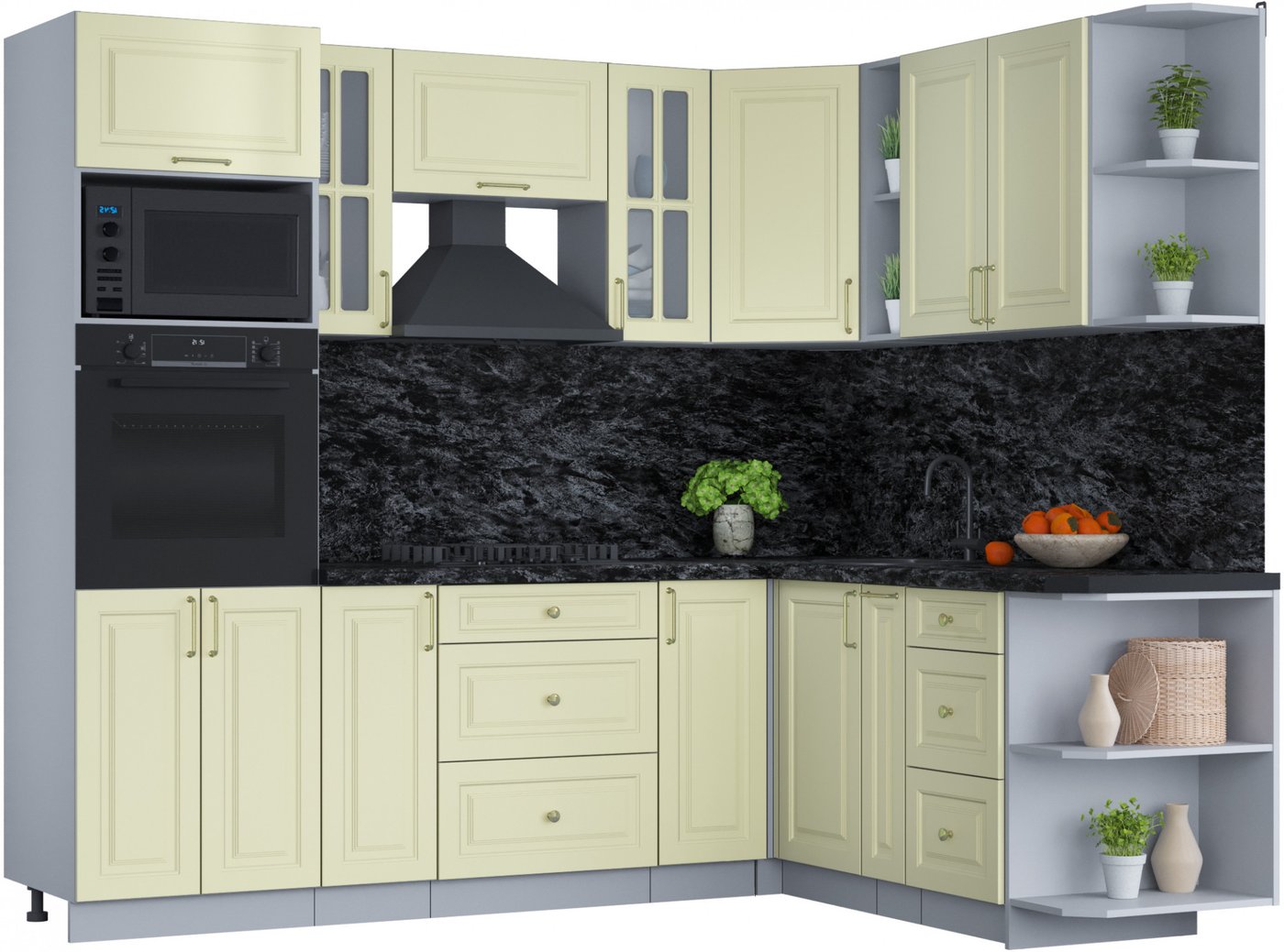 Готовая кухня Интерлиния Мила Шато 1.88x2.4 ВТ правая (слоновая кость/слоновая кость/кастилло темный)