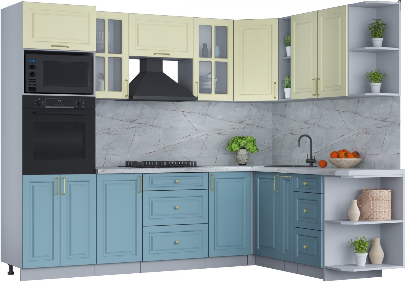 Готовая кухня Интерлиния Мила Шато 1.88x2.6 ВТ правая (слоновая кость/океан/серый каспий)