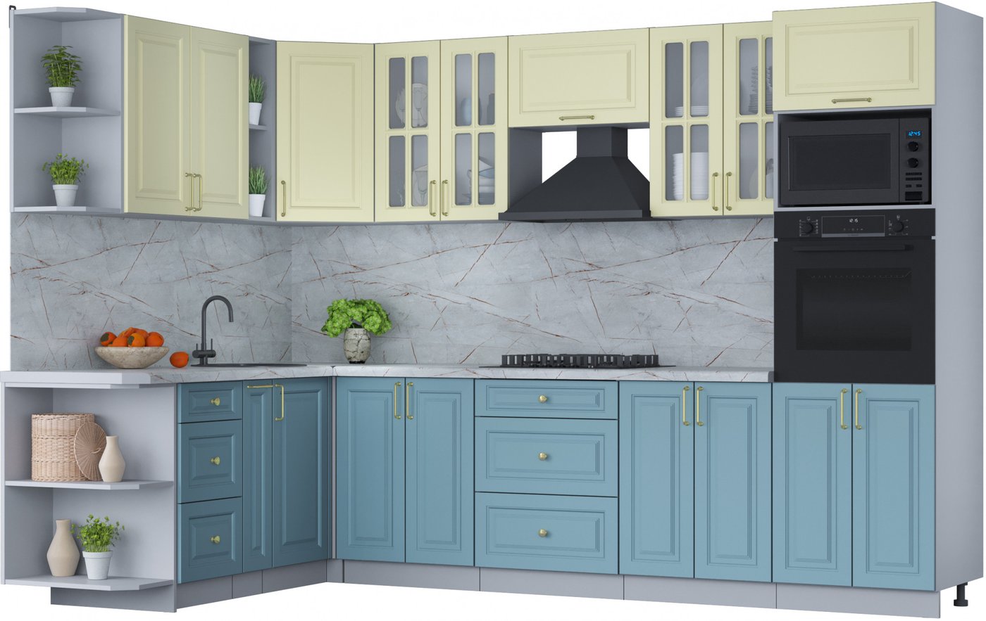Готовая кухня Интерлиния Мила Шато 1.88x3.0 ВТ левая (слоновая кость/океан/серый каспий)