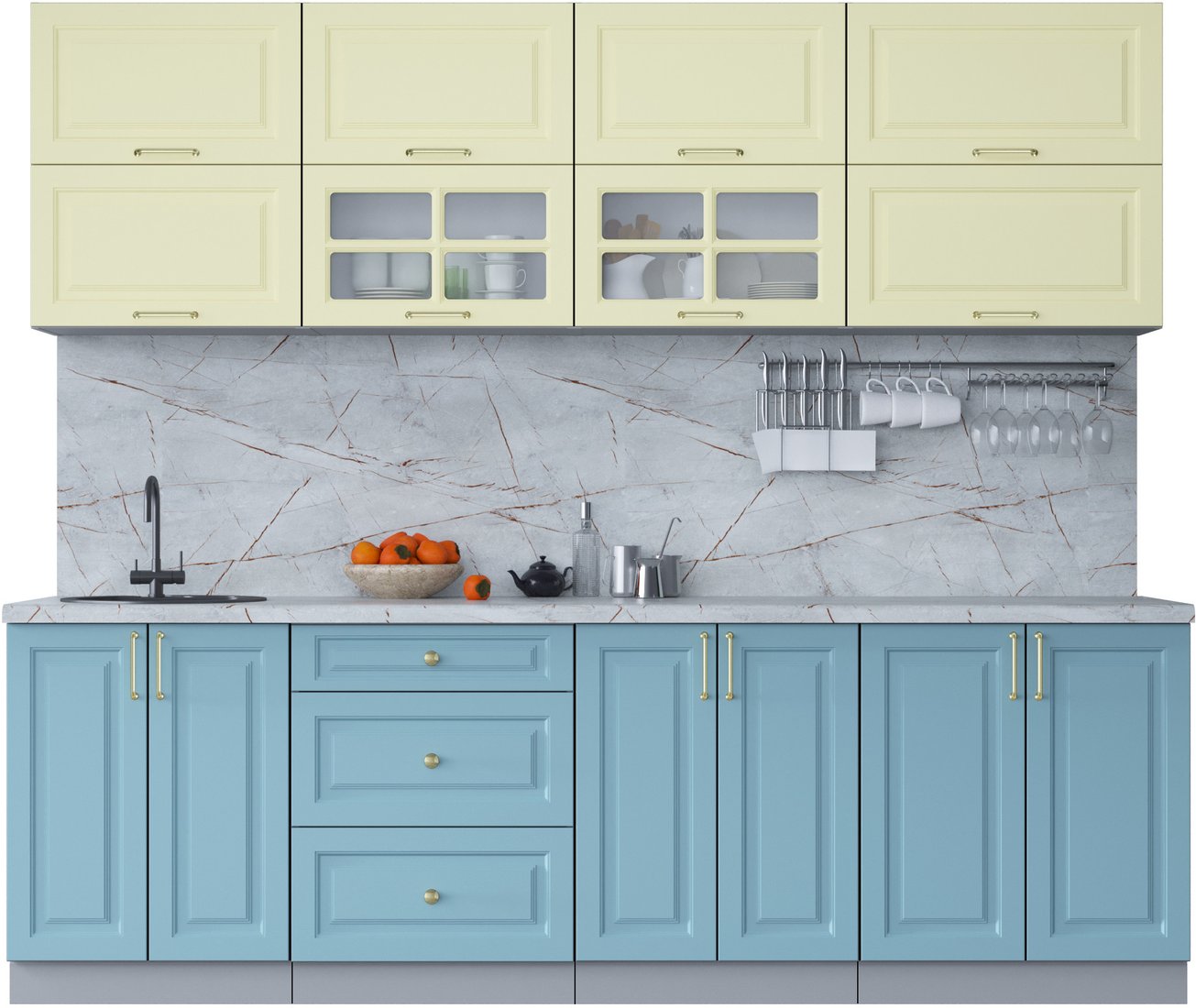 Готовая кухня Интерлиния Мила Шато 2.5Б (слоновая кость/океан/серый каспий)