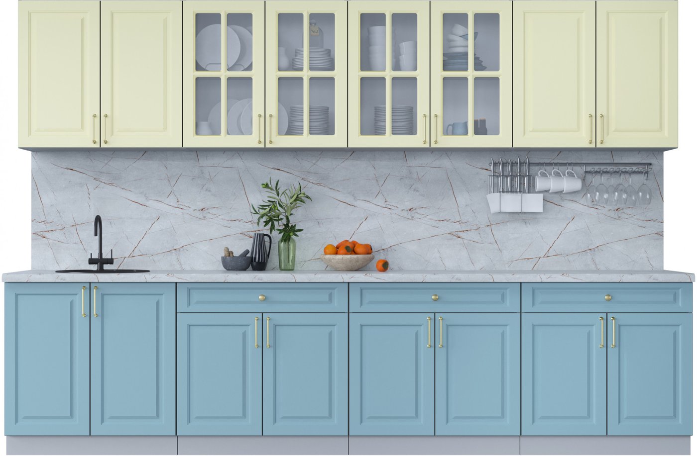 Готовая кухня Интерлиния Мила Шато 3.2А (слоновая кость/океан/серый каспий)