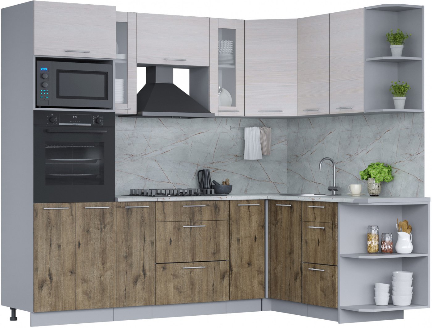 Готовая кухня Интерлиния Мила 1.68x2.4 правая (вудлайн кремовый/дуб веллингтон/серый каспий)