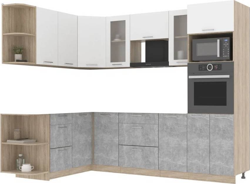 Готовая кухня Интерлиния Мила 1.68x2.6 левая без столешницы (белый платинум/бетон)