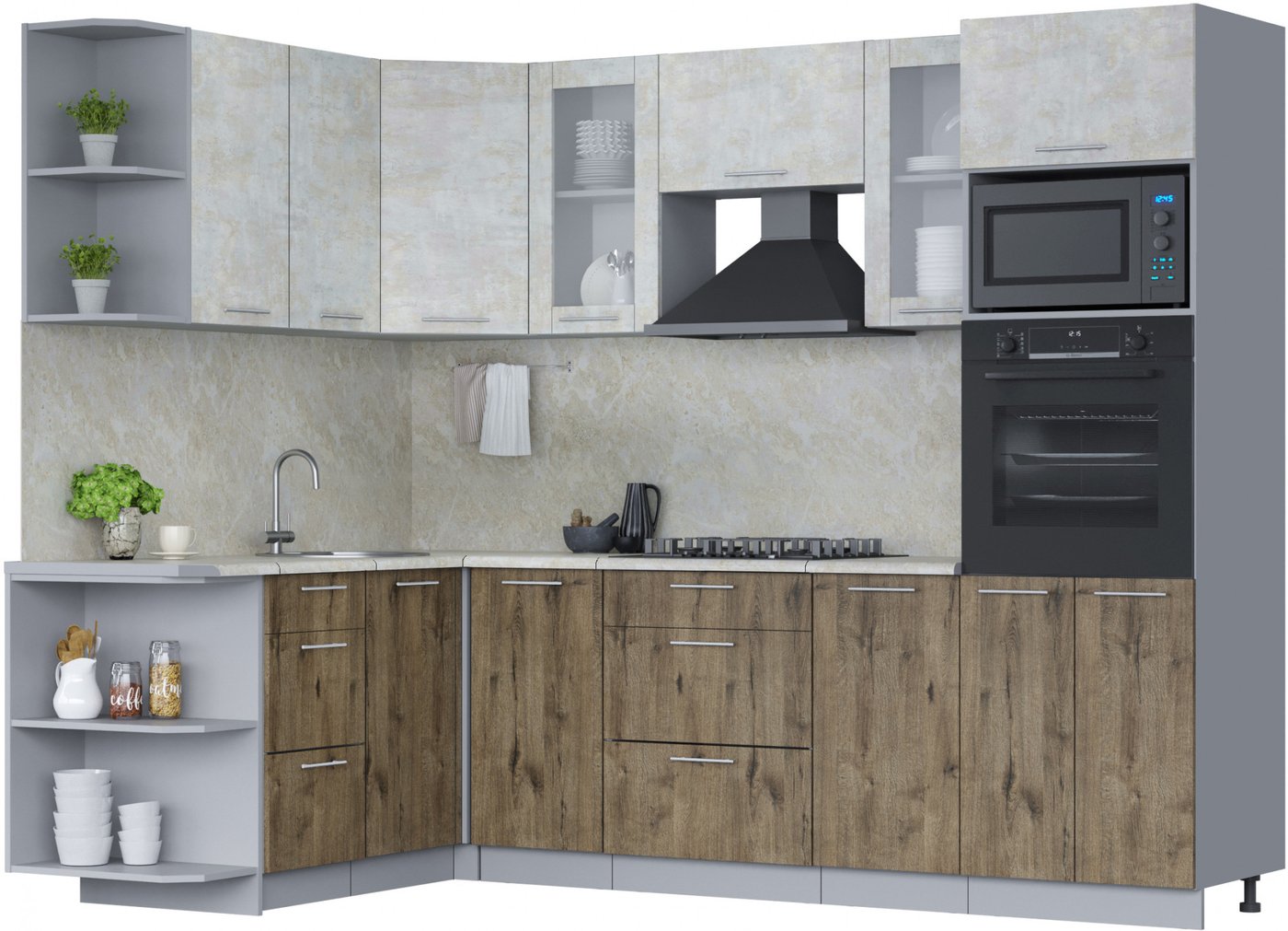 Готовая кухня Интерлиния Мила 1.68x2.6 левая (бетон лайт/дуб веллингтон/опал светлый)