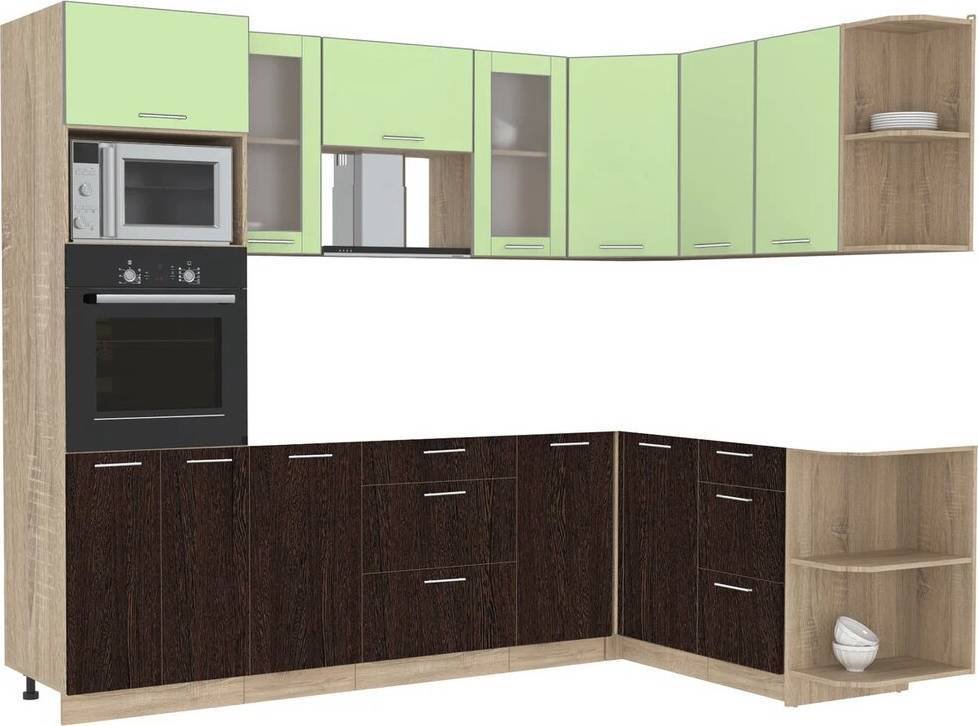 Готовая кухня Интерлиния Мила 1.68x2.6 правая без столешницы (салатовый/дуб венге)