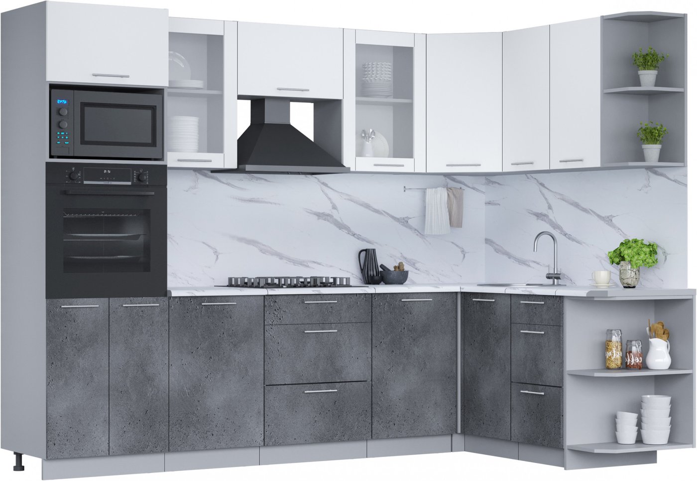 Готовая кухня Интерлиния Мила 1.68x2.8 правая (белый платинум/бетон портленд/белый гранит)