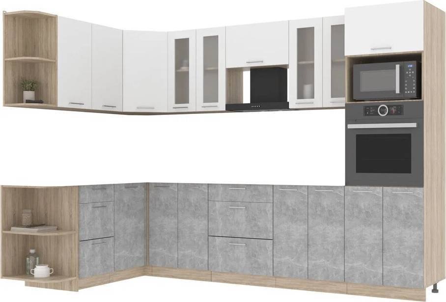 Готовая кухня Интерлиния Мила 1.68x3.0 левая без столешницы (белый платинум/бетон)